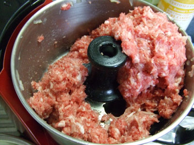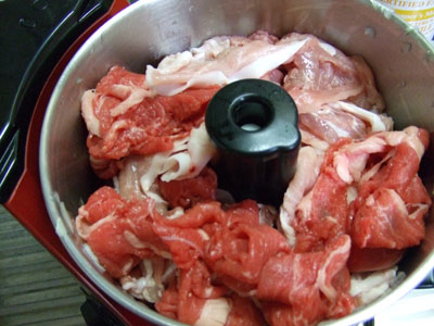 ・さらに牛肉・豚肉をセットして、ミンチにします。