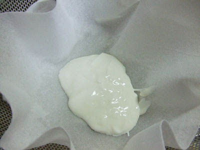 ザルの上にキッチンペーパーを敷いて、その上にヨーグルトをのせておくと