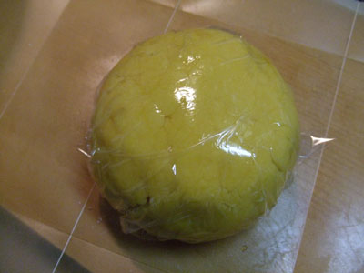 ・生地がまとまったら、ラップに包んで冷蔵庫で休ませます。