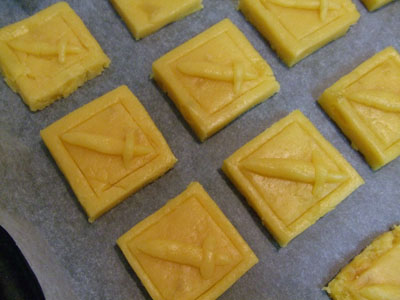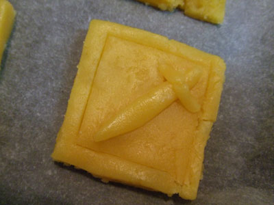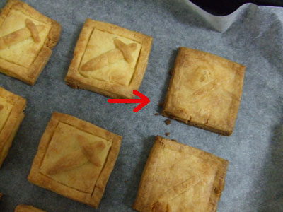 ところで、型押しで頑張ろうとした初期バージョンは、こんな焼き上がりになりました_| ̄|○