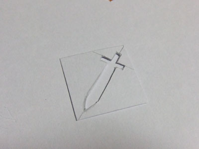今回は3cm角に切った厚紙をさらに剣の模様に切り抜いて、型を作りました。