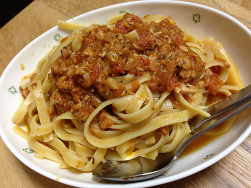 ついでに今年もこの自家製ポモドーロソースを使って、2013年版トンノを作ってみました。